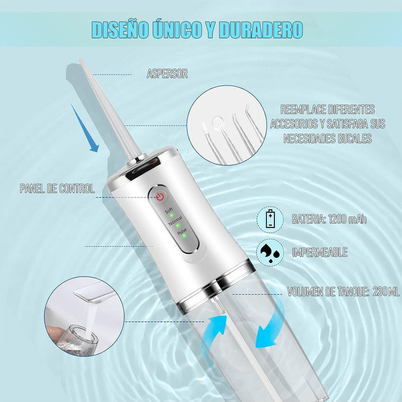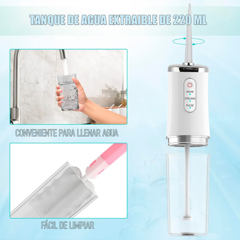 ¡Haz que el cuidado dental sea una experiencia cómoda y práctica con nuestro irrigador bucal portátil!
