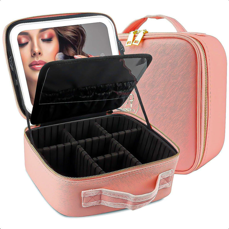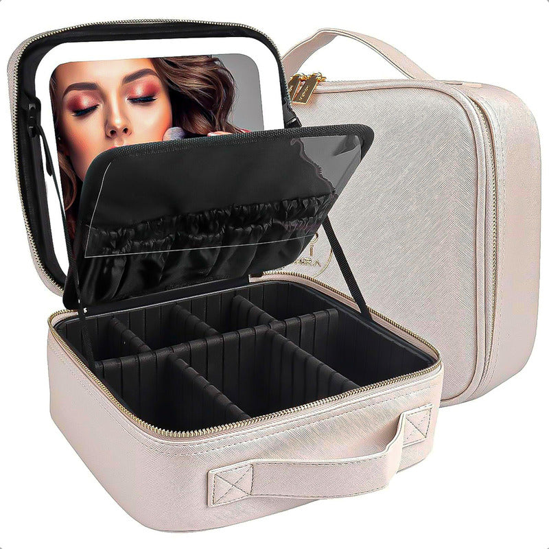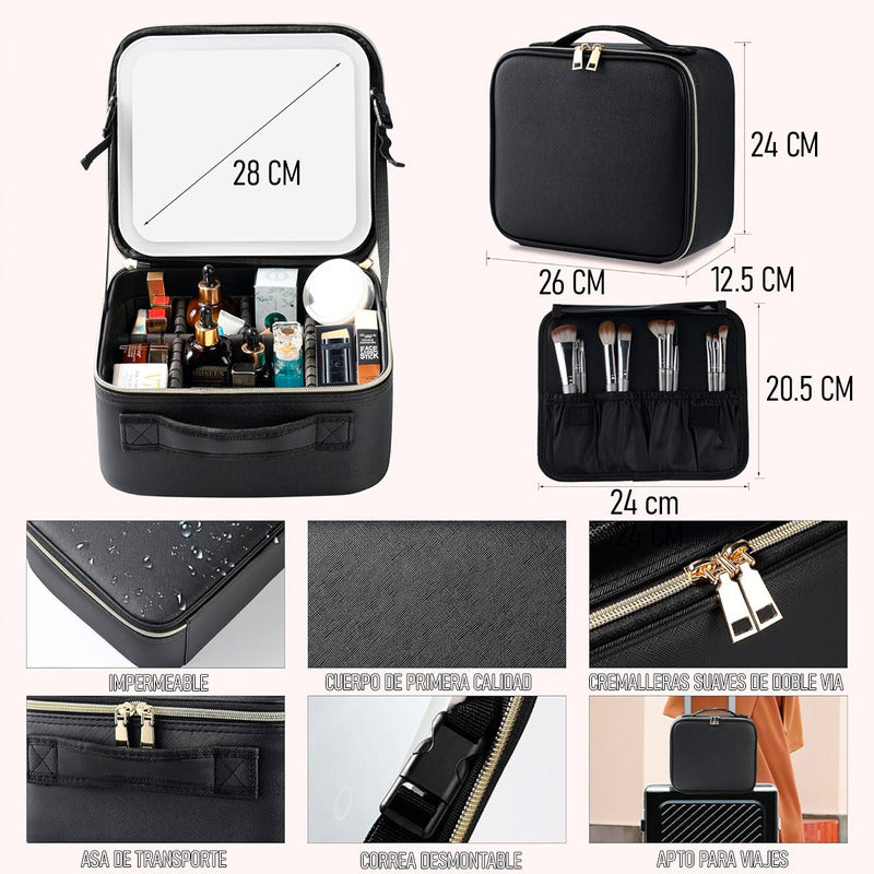 Cosmetiquero Con Espejo Organizador Led Cosmeticos Maleta