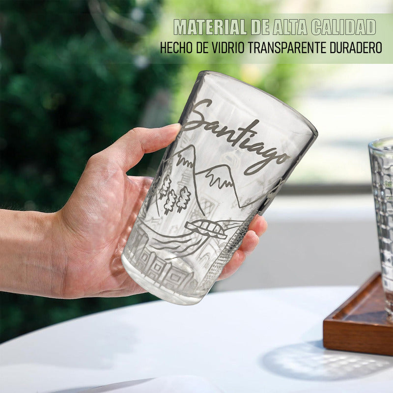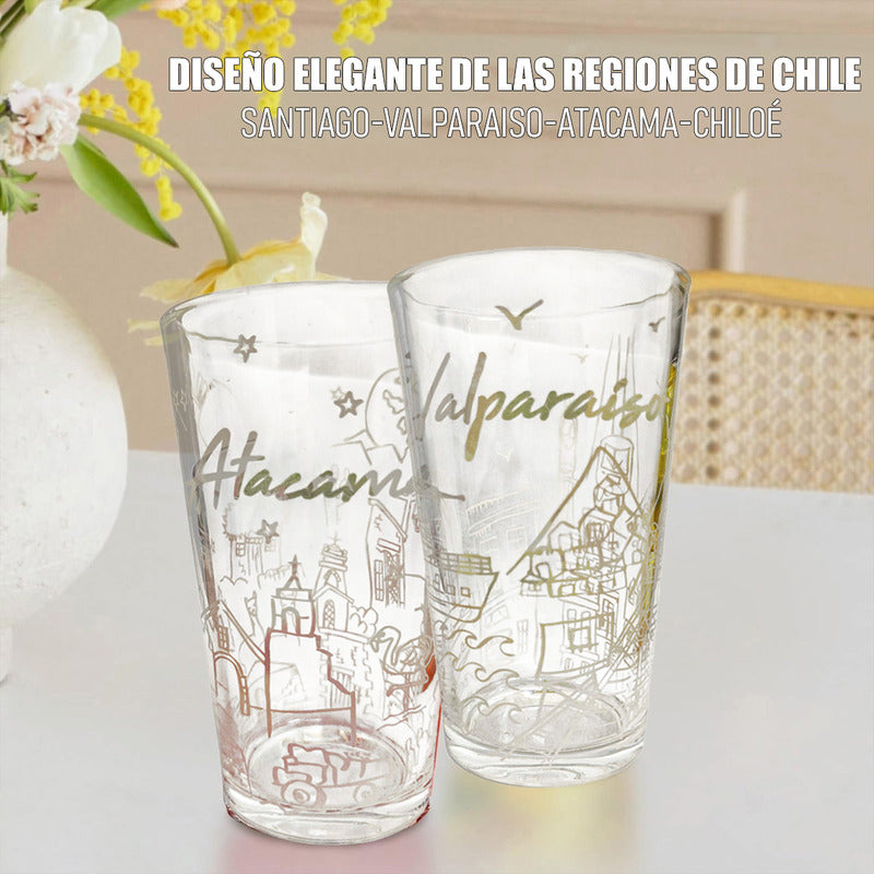 SET DE 4 VASOS DE VIDRIO REGIONES DE CHILE
