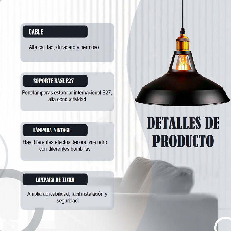 La pantalla colgante industrial es adecuada para cualquier bombilla incandescente o LED con base E27 estándar (bombilla no incluida), fácil instalación, luz uniforme, foco suave, bajo consumo de