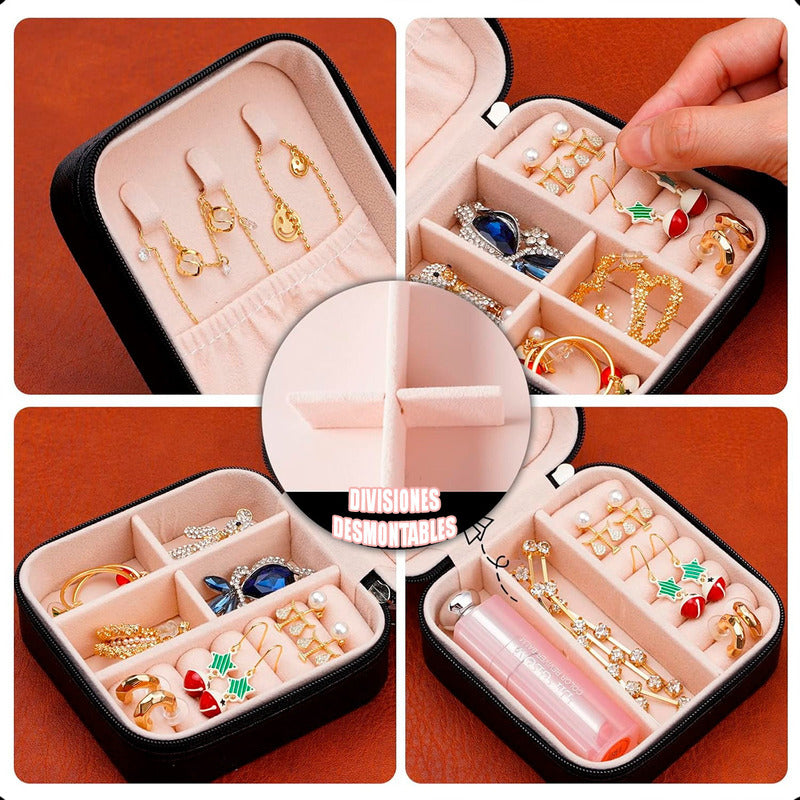 Las mini cajas de joyería están diseñadas en diferentes compartimentos, que son fáciles de ordenar tus anillos, collares, etc., satisfaciendo tus diferentes demandas de uso y te ofrecen mucha comodidad; además, el diseño de cremallera también hace que sea fácil abrir y cerrar