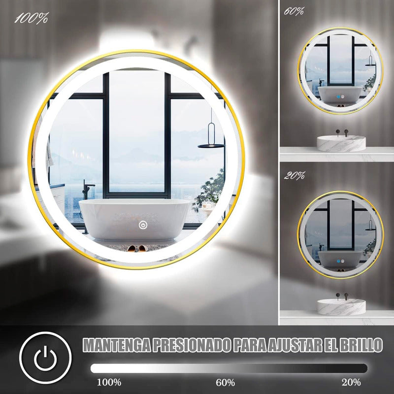 Este espejo LED toca el botón de luz para cambiar la temperatura de color: 3000 K (luz cálida), 4000 K (luz neutra) y 6000 K (luz blanca), toca el botón de brillo para ajustar el nivel de brillo (10% ~ 100%). La función de memoria inteligente memorizará el nivel de brillo cuando la luz se apaga con el botón táctil, y la temperatura de color cuando la luz se apaga con el interruptor de pared.