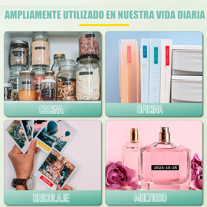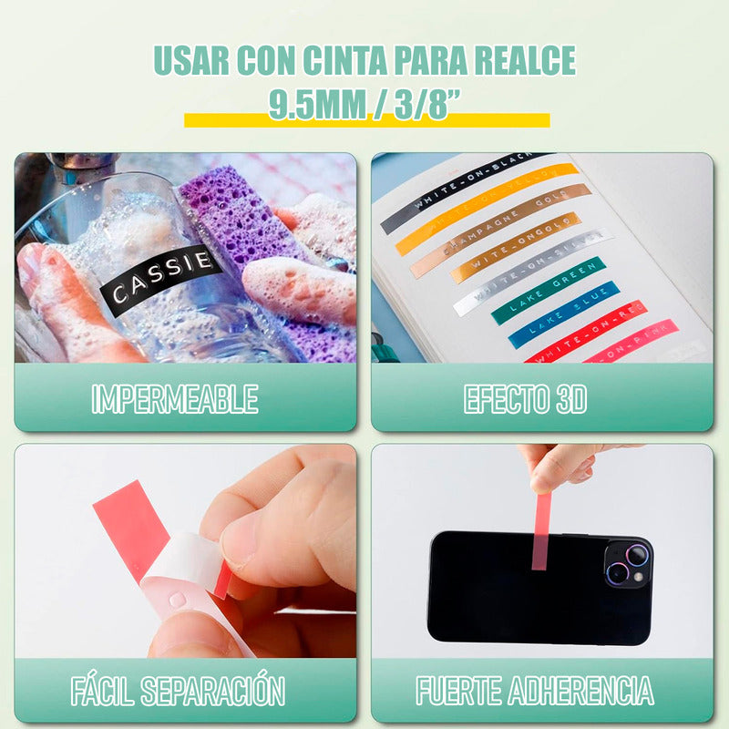 Robusta y duradera, Hecha de materiales ABS y PC, resistente y duradera, compacta y liviana, el cuerpo pesa aproximadamente 150 g, compatible con papel de etiqueta de 9.5 mm de ancho, portátil y fácil de almacenar.