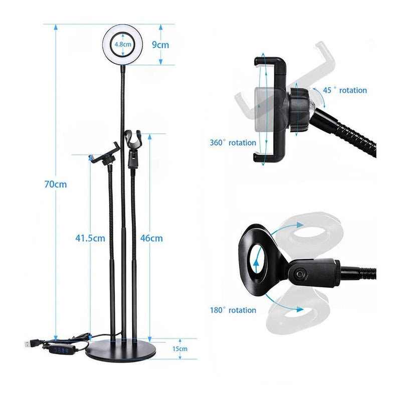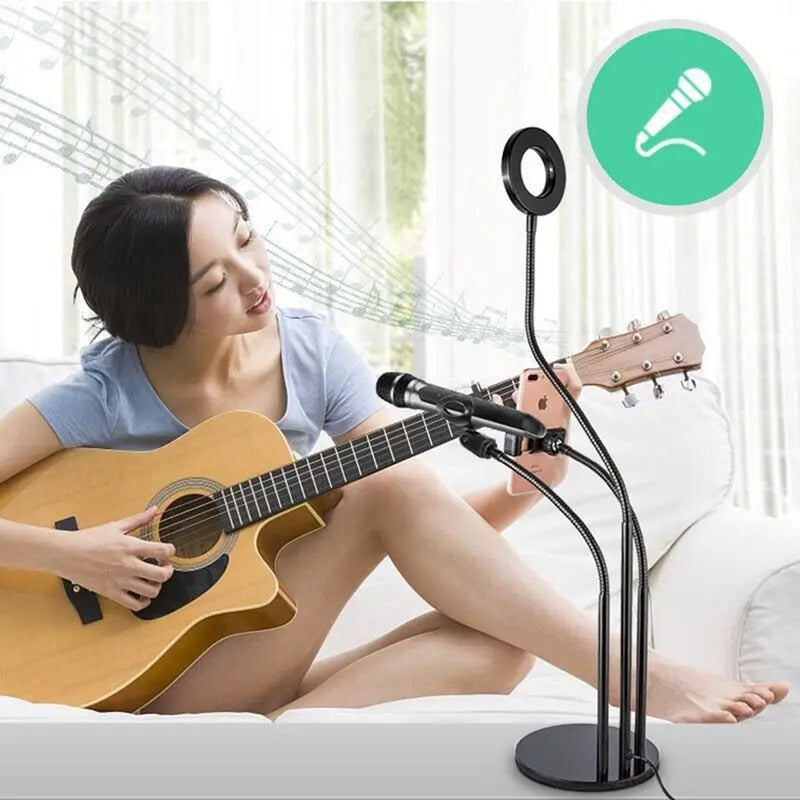 Anillo de luz LED para Selfie, anillo de luz regulable multifunción, soporte de micrófono y Celular.