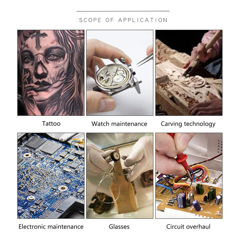 - Contiene bisagras flexibles, mueva la lupa dentro y fuera de su campo de visión con un movimiento de la muñeca.