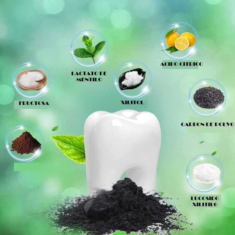El polvo de carbón para blanquear los dientes puede eliminar eficazmente las manchas de café, té, vino y tabaco, mejora la salud bucal y refresca el aliento.