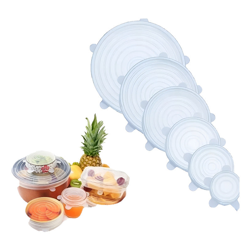 Set 6 Tapas De Silicona Adaptable Para Alimentos Reutilizabl