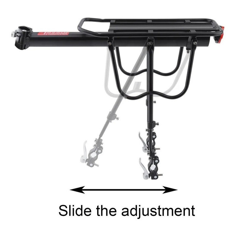 Sus marcos de panel lateral evitan que la carga o la alforja golpeen el neumático y también tiene un reflector trasero para una conducción nocturna segura. Diseño duradero y ligero hecho de aleación de aluminio con diseño de conexión rápida que ahorra tiempo.