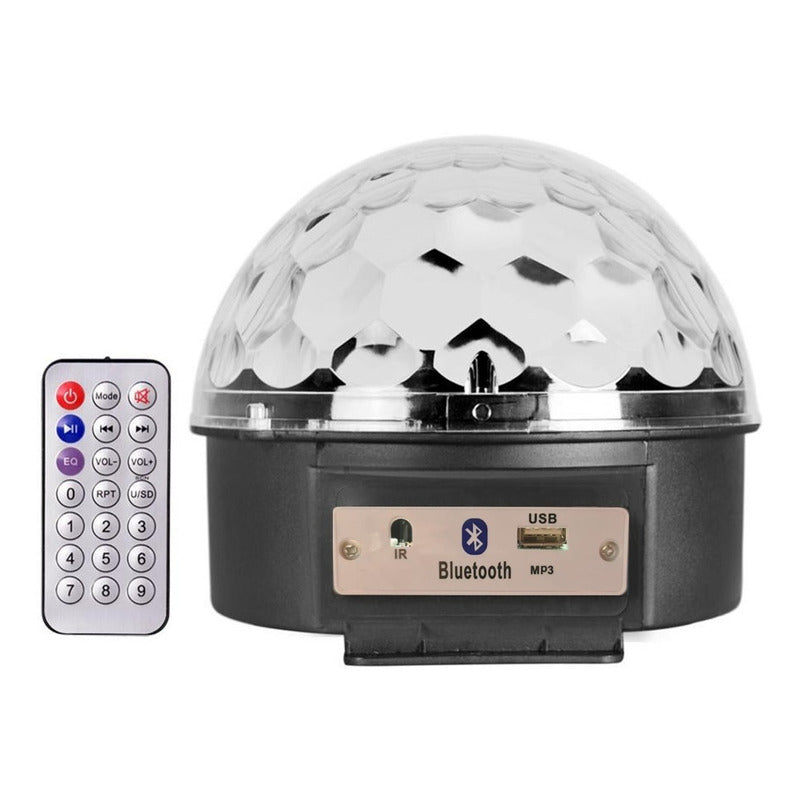 Excelente para carretes y reuniones con los amigos, bola de disco con luces led, conectividad bluetooth y parlante incluido, reproduce musica mientras disfrutas de un ambiente de luces rotatorias automaticamente, puedes hacerla funcionar solo encendida sin conectar a un dispositivo de reproduccion, permitiendo tener ambas funciones.