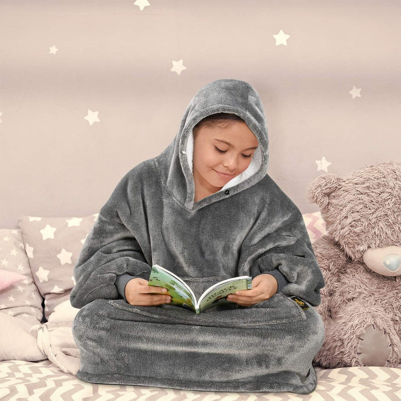 Imprescindible para el invierno. Esta sudadera tipo manta de gran tamaño con mangas largas cubre a tus pequeños completamente, les permite mover y usar sus manos libremente. Es perfecta para descansar en casa y para un evento deportivo