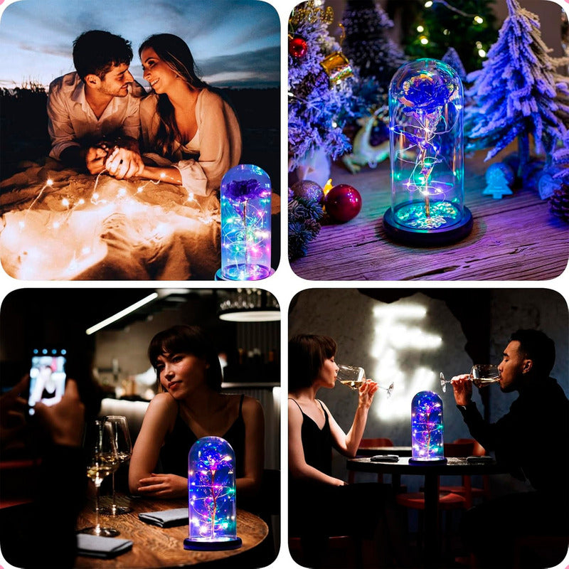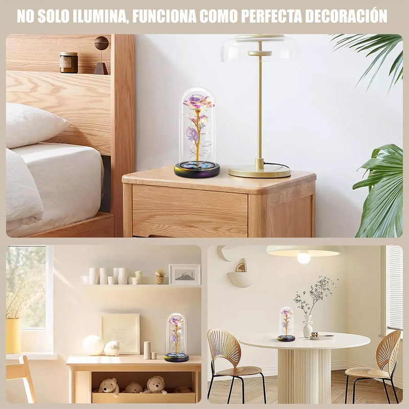 Flores Artificiales Rosa Eterna Con Luces Led Cupula Vidrio