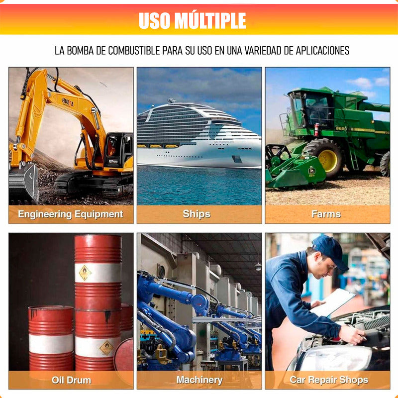 La bomba de transferencia de fluidos se utiliza con fluidos a base de aceite, combustibles para calefacción, aceites de motor, ATF, diésel y queroseno.