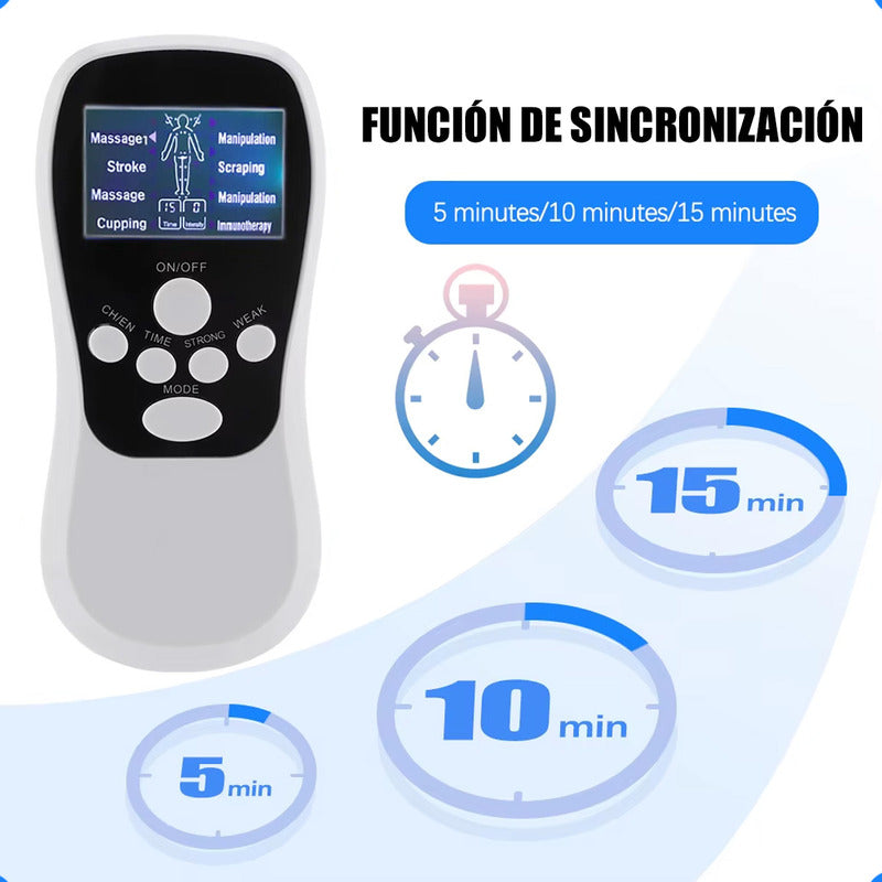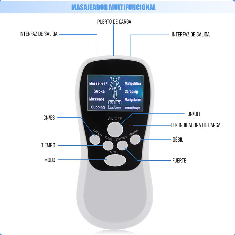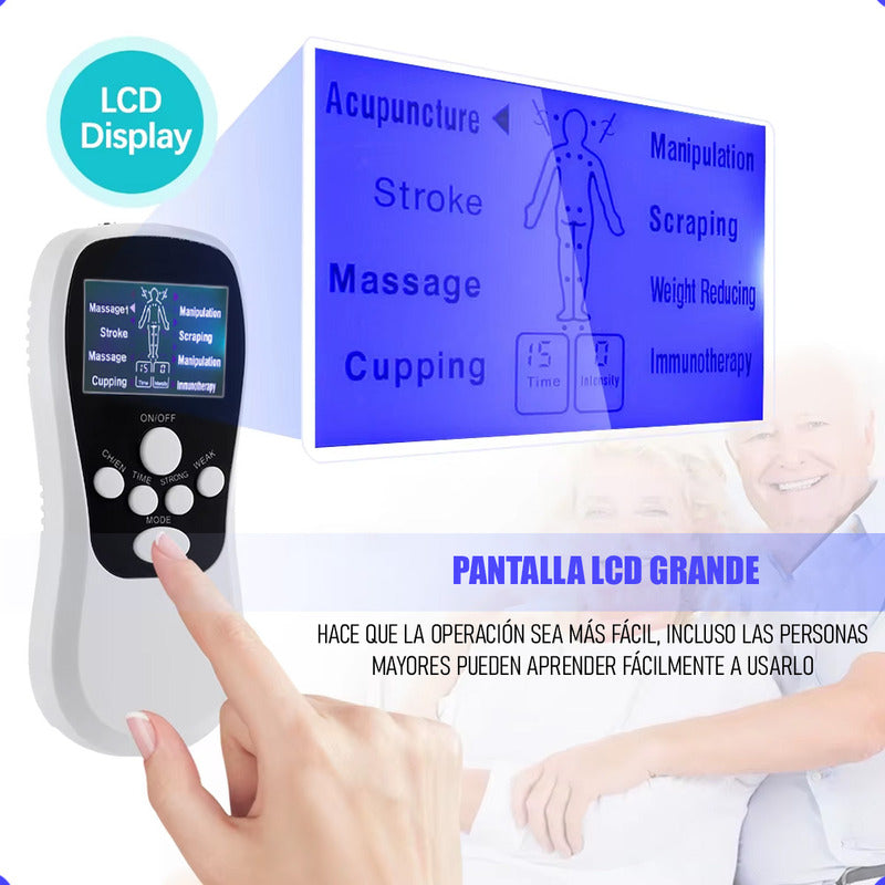 -8 modos disponibles: Acupuntura, Trazo, Masaje, Ventosas, Manipulación, Raspado, Reducción de peso, Inmunoterapia