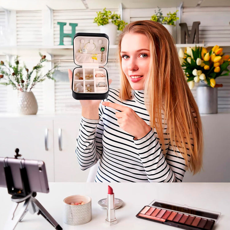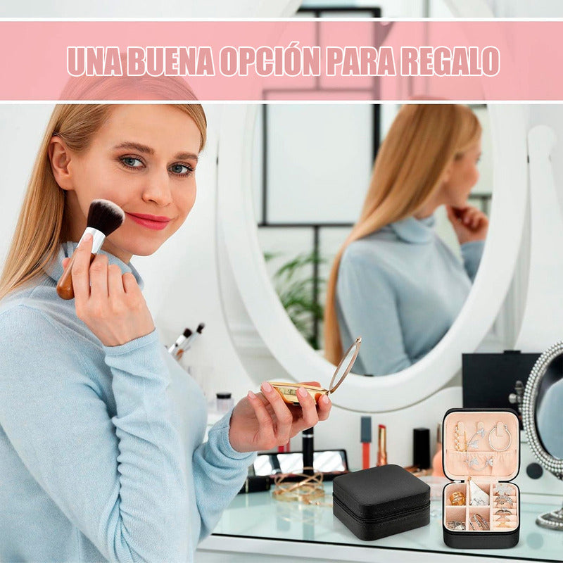 Las mini cajas de joyería están diseñadas en diferentes compartimentos, que son fáciles de ordenar tus anillos, collares, etc., satisfaciendo tus diferentes demandas de uso y te ofrecen mucha comodidad; además, el diseño de cremallera también hace que sea fácil abrir y cerrar