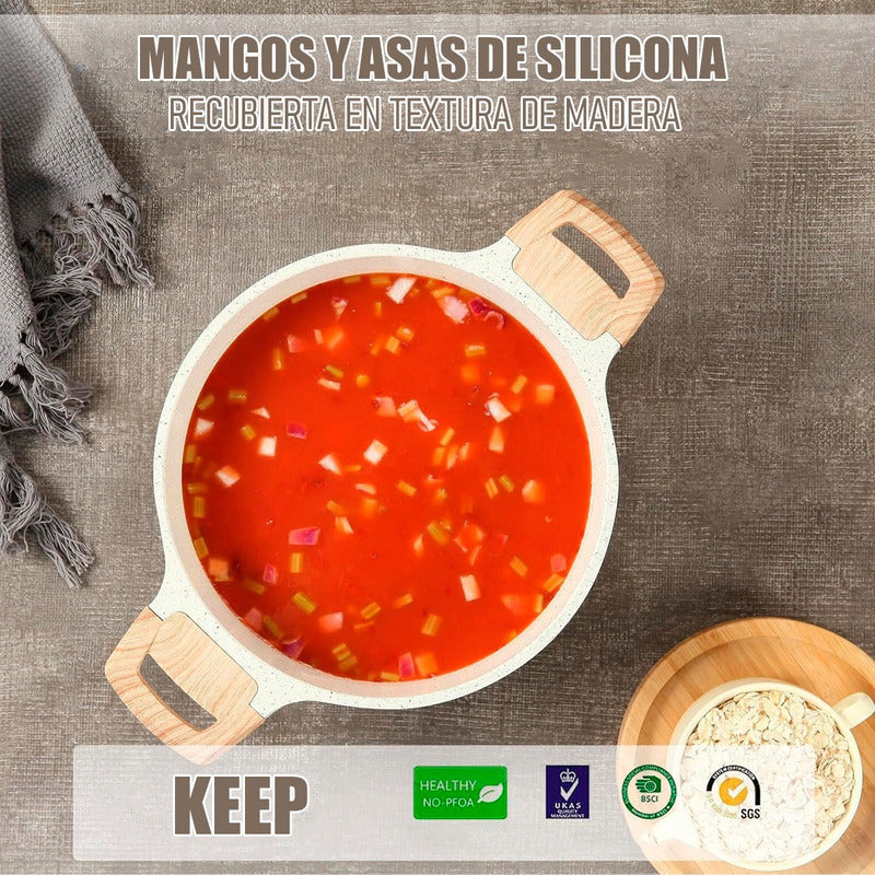 ANTIADHERENTE PREMIUM: "ILAG" es un antiadherente de origen suizo que proporciona el cuidado adecuado para los nutrientes de tus comidas, además de una fácil y rápida limpieza.