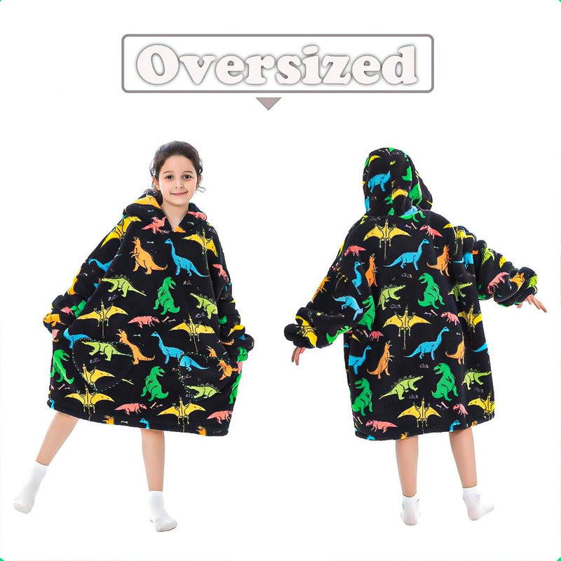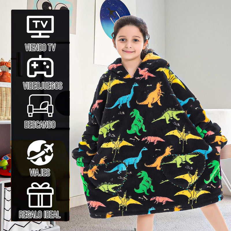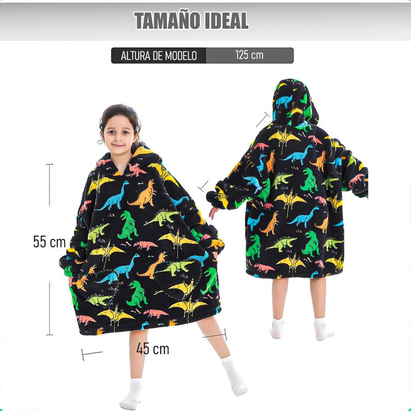 Esta sudadera tipo manta de gran tamaño con mangas largas cubre a tus pequeños completamente, les permite mover y usar sus manos libremente. Es perfecta para descansar en casa y para un evento deportivo