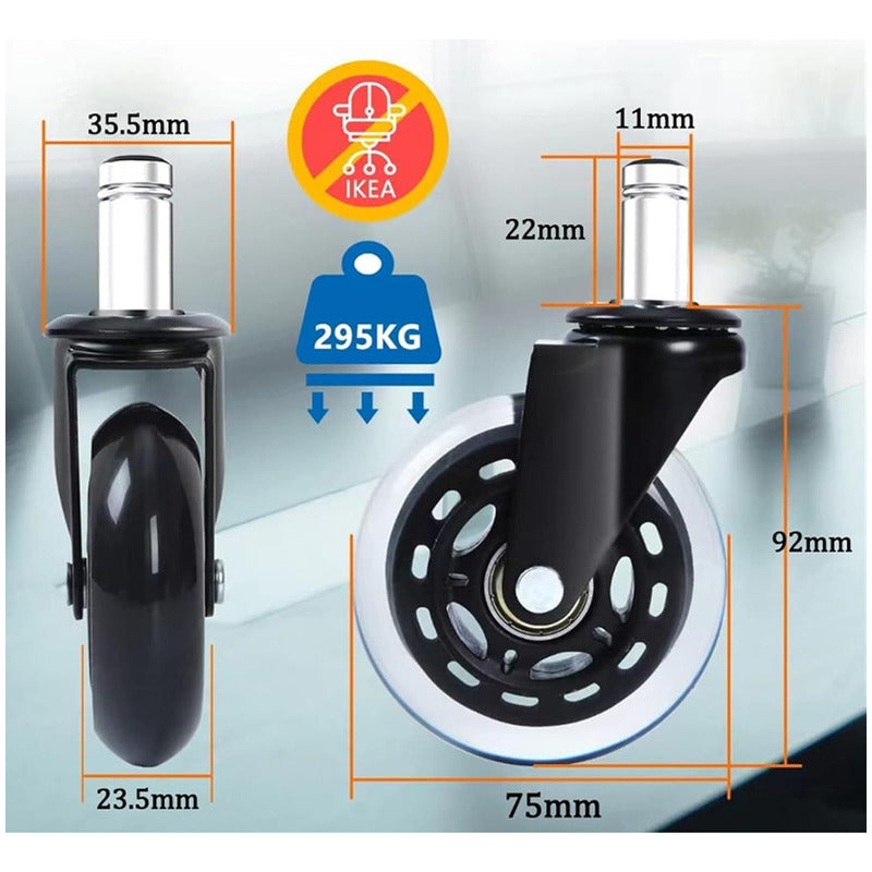 - Rodaje suave y silencioso, seguras y aptas para todo tipo de pisos sin dañarlos.