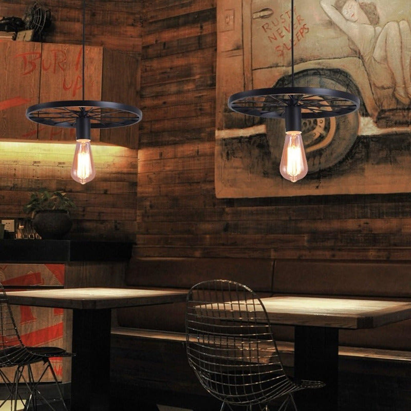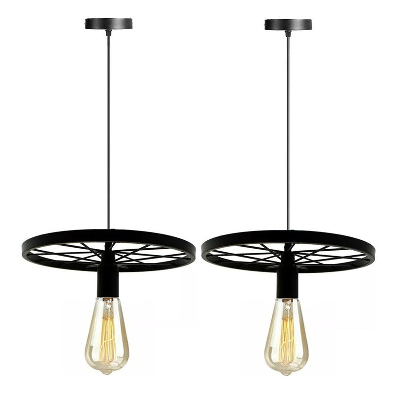 Pack X2 Lampara Colgante Rueda Rústica Lampara Vintage Techo
