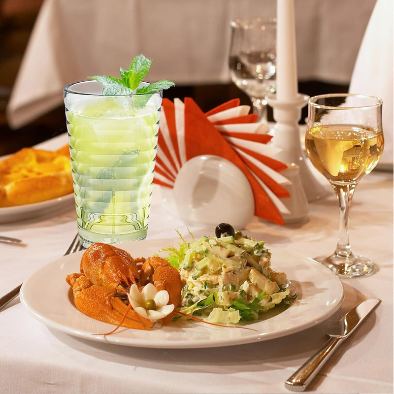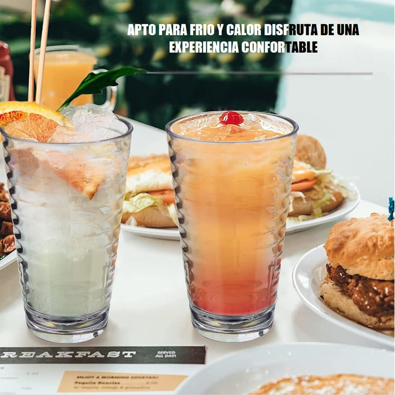 Estos vasos altos son transparentes y presentan fácilmente una bebida colorida con un patrón único de línea ondulada que añade un toque de elegancia a tu bebida.