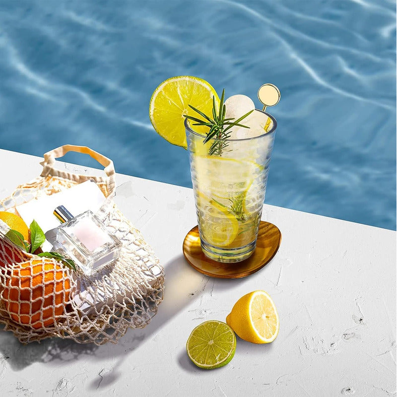 Estos vasos altos son transparentes y presentan fácilmente una bebida colorida con un patrón único de línea ondulada que añade un toque de elegancia a tu bebida.