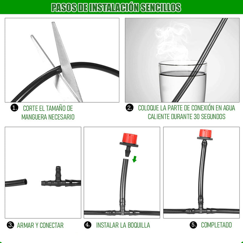 Este kit de riego de jardín se adapta perfectamente a diversas aplicaciones, desde la agricultura hasta el cuidado de patios, invernaderos, camas de flores, jardines . Brinda un soporte eficaz para el cuidado de tus plantas en diferentes entornos.