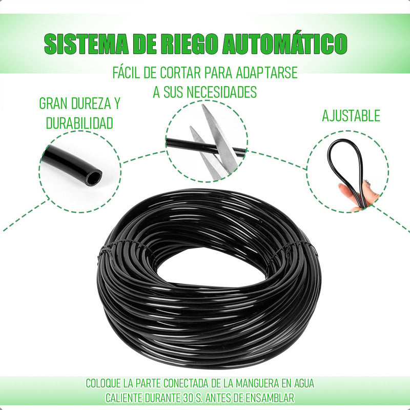La tubería de riego está fabricada con material de alta calidad resistente a los rayos UV y se refrigera directamente con agua del grifo, sin consumo eléctrico.