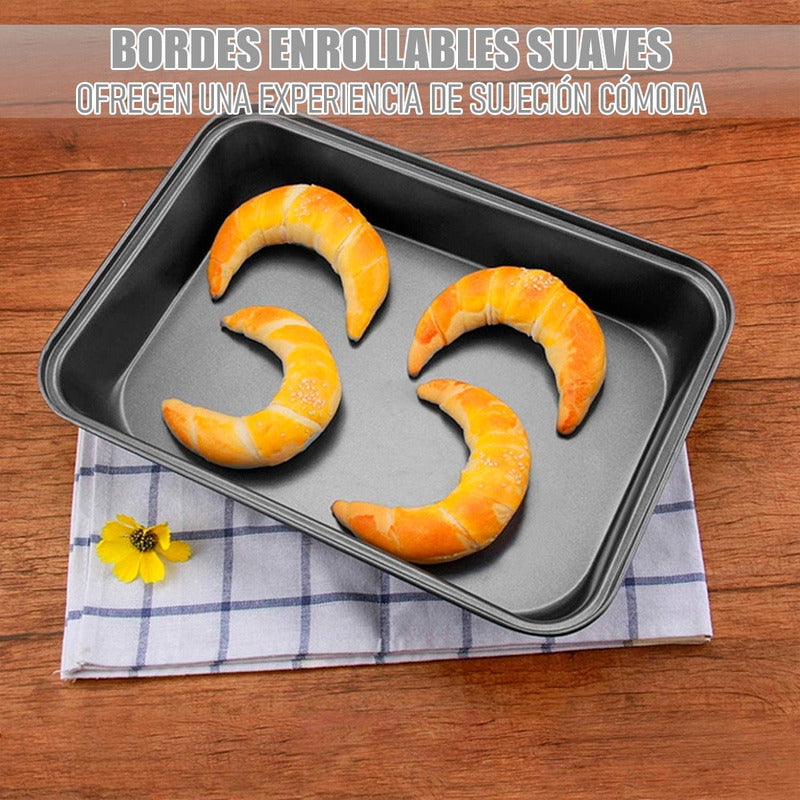 Con material de acero al carbono de calidad, nuestras bandejas para hornear están libres de sustancias nocivas al calentar, ofreciendo una cocción segura y saludable. El revestimiento antiadherente evita la adhesión de los alimentos, lo que permite una liberación rápida y sin esfuerzo de todos los productos horneados mientras preserva su integridad.