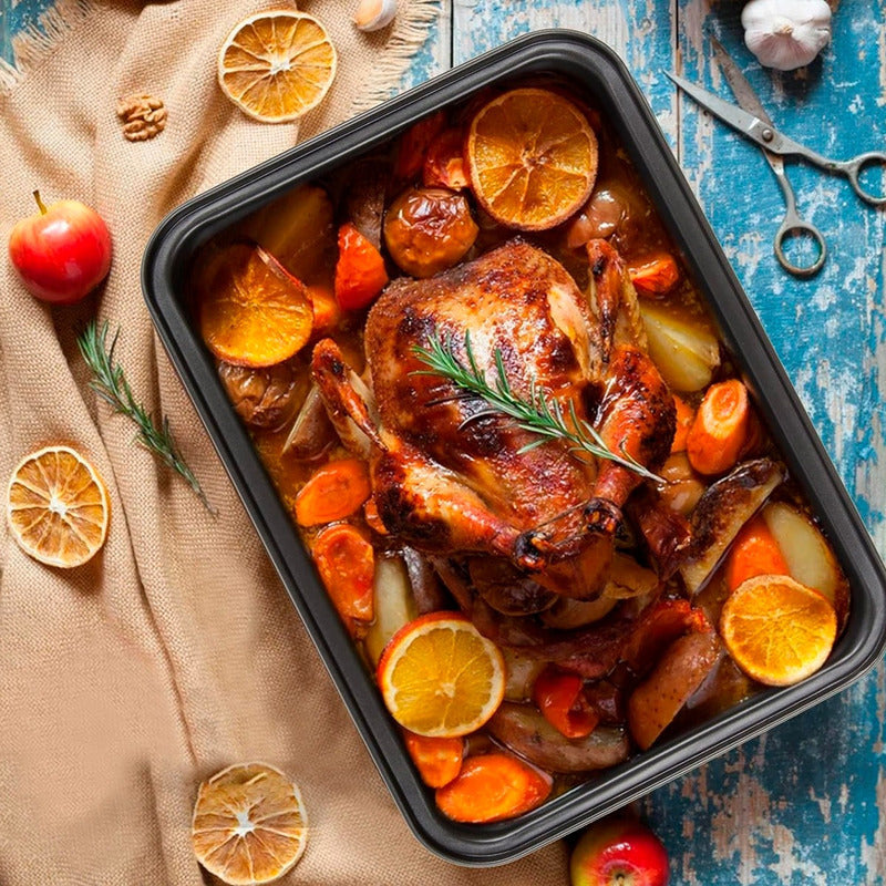 Con una mano de obra meticulosa, nuestras sartenes antiadherentes son ideales para hornear lasañas, pasteles de brownie, carnes, galletas, pizzas y mucho más. También sirven como bandejas o recipientes de frutas según sea necesario, lo que los convierte en el complemento perfecto para tu cocina.