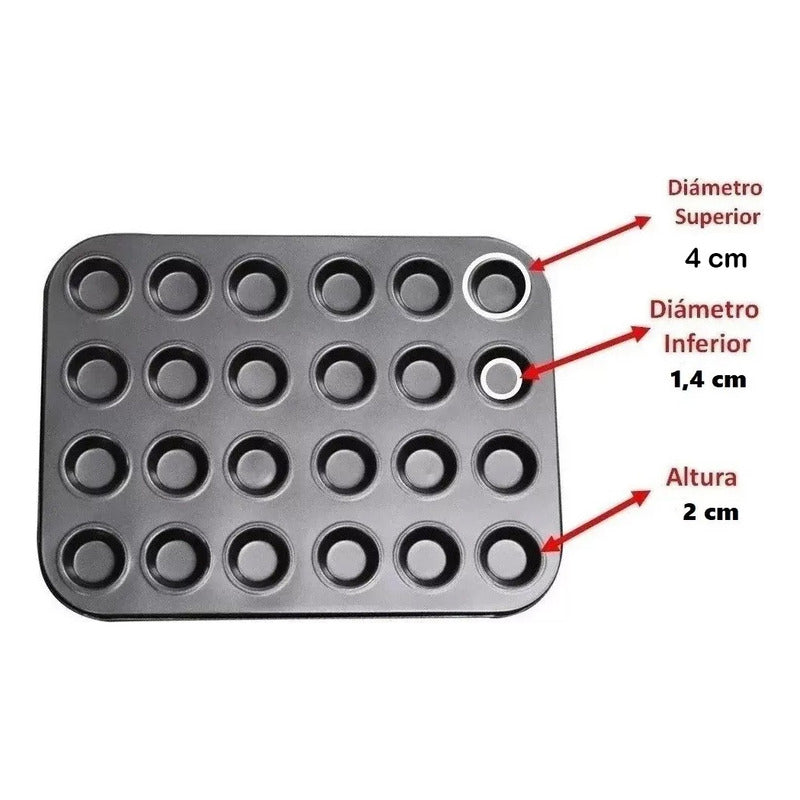 • Molde con 24 cavidades de 5cm de diámetro con 2cm de profundidad.