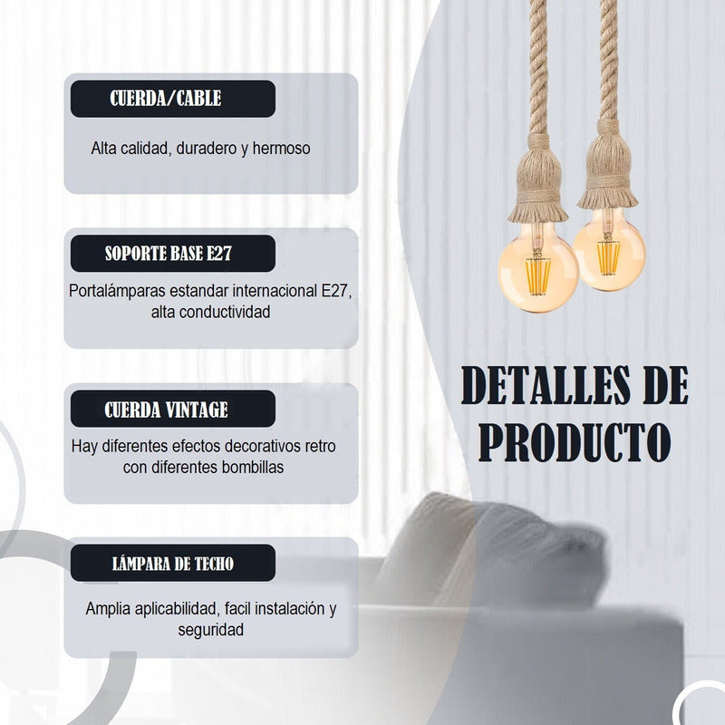 Lampara Soquete Cuerda Marina Vintage Decoracion E27 Doble