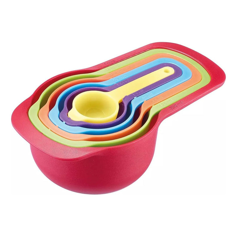 Este colorido juego de tazas medidoras tiene 5 tamaños diferentes.