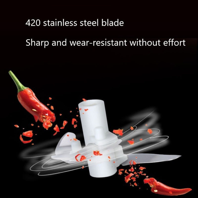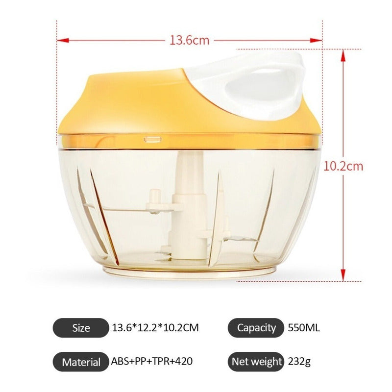 Este procesador de verduras manual es una herramienta práctica y fácil de usar, sirve para picar cebollas, varios vegetales o trozos de fruta que no sean demasiado duros. Sus cuchillas de acero inoxidable se desmontan y se pueden limpiar fácilmente en el lavavajillas.