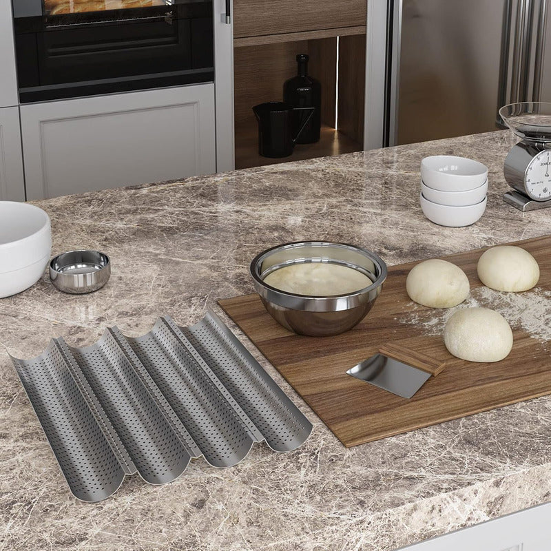 Molde para hornear ondulado. Este molde proporciona a los panaderos caseros una manera fácil de hornear baguettes franceses frescos y cálidos, es un regalo maravilloso para los amantes del Horneado.
