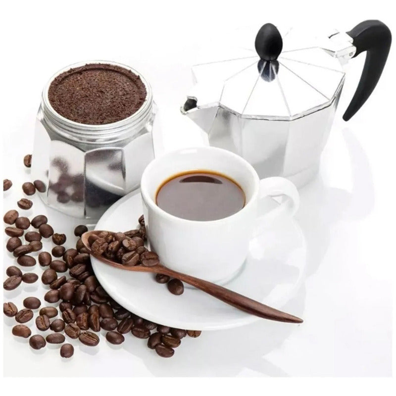 Prepara un café de excelente calidad y sabor, con esta maquina de expreso, fabricada en aluminio de la mas alta calidad y durabilidad, tiene una capacidad de 420 ml aproximadamente, cuenta con una válvula de seguridad para tu mayor confort.